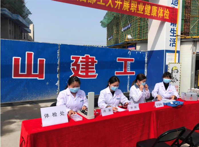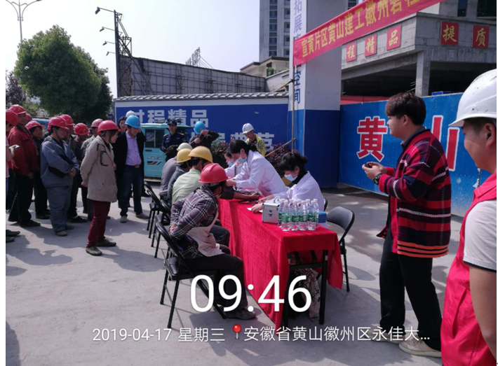 2019年4月17日上午9時(shí),黃山建工集團(tuán)承建的徽州碧桂園德源項(xiàng)目工程?hào)|大門,人聲鼎沸、歡聲笑語,每個(gè)人臉上都洋溢著幸福的笑容,他們排著隊(duì),有組織、有秩序地參加由碧桂園德源工程施工項(xiàng)目部組織的“關(guān)愛健康、免費(fèi)體檢”活動(dòng)。此次體檢活動(dòng)邀請(qǐng)了屯溪同仁門診部的四名醫(yī)生,分科體檢,對(duì)每位職工的心率、血壓、外科、口腔等做了細(xì)致的檢查,并做好體檢記錄,同時(shí)對(duì)工友們關(guān)心的日常生活問題、常識(shí)做了解答和溫馨提示,此次項(xiàng)目部參加體檢人員惠及95名。本次活動(dòng)是為了增強(qiáng)員工關(guān)懷,保障員工身體健康,營(yíng)造”平安、和諧、幸福、美麗”的示范工地。