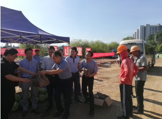 二〇一九年八月二日上午,黃山市屯溪區(qū)區(qū)委書記江善良率區(qū)四大班子及相關(guān)部門領(lǐng)導(dǎo)冒著酷暑,頂著驕陽,風(fēng)塵仆仆親赴黃山市建工集團(tuán)正在緊張施工中的黃山市重點(diǎn)工程項(xiàng)目八一大橋項(xiàng)目現(xiàn)場(chǎng)“送清涼”。