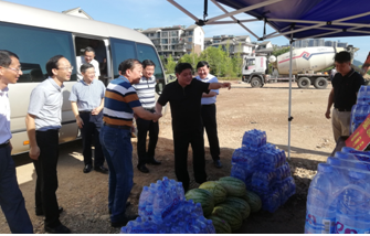 烈日下的八一大橋項(xiàng)目現(xiàn)場(chǎng)一片繁忙景象,工人們有的在支模、有的在焊接鋼筋、有的在澆筑砼,一切都井然有序,忙而不亂。屯溪區(qū)區(qū)委書記江善良一行一到現(xiàn)場(chǎng),就將一件件防暑降溫慰問品遞到在施工的工人們手中,并囑咐在高溫下施工的操作人員要多注意休息、及時(shí)補(bǔ)充水分和營養(yǎng),按項(xiàng)目部要求合理安排工作時(shí)間,避免中午高溫時(shí)間段施工,同時(shí)要求項(xiàng)目部積極做好防暑降溫工作,保障施工一線工人的生命安全。充分體現(xiàn)了屯溪區(qū)委、區(qū)政府等領(lǐng)導(dǎo)對(duì)我集團(tuán)公司的一片深情厚誼和關(guān)懷。