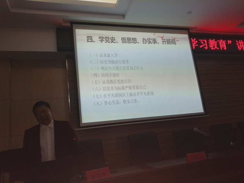 動(dòng)員結(jié)束后,緊接著由市委黨校楊曉黎教授為我們作了精彩的“黨史學(xué)習(xí)教育”專題報(bào)告。楊教授為我們解讀了中國(guó)共產(chǎn)黨由誕生、發(fā)展、壯大到建立新中國(guó),以及帶領(lǐng)全國(guó)人民建設(shè)小康社會(huì)艱難而輝煌的革命歷程。同時(shí)楊教授也結(jié)合自己對(duì)黨史的研究體會(huì),以豐富的史實(shí)、鮮明的觀點(diǎn)、精辟的語言,向我們闡述了中國(guó)共產(chǎn)黨100年艱苦卓絕的風(fēng)雨歷程,總結(jié)出沒有共產(chǎn)黨就沒有新中國(guó)的偉大真理。報(bào)告深入淺出、內(nèi)容豐富,對(duì)我們加強(qiáng)黨的歷史和思想政治理論學(xué)習(xí),進(jìn)一步提高黨性修養(yǎng),具有很強(qiáng)的理論指導(dǎo)作用。報(bào)告很受教育,很受啟發(fā),收獲很大。會(huì)議最后,集團(tuán)總支副書記汪明星要求廣大黨員干部認(rèn)真學(xué)習(xí)領(lǐng)會(huì),掌握實(shí)質(zhì),以飽滿的工作熱情和扎實(shí)的工作作風(fēng),認(rèn)真履行職責(zé),努力工作,為公司的發(fā)展壯大貢獻(xiàn)力量。