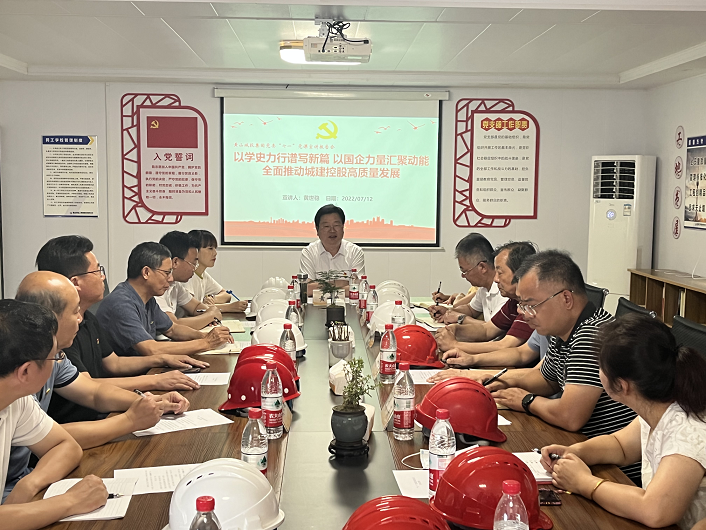 2022年7月12日上午,黃山城投集團(tuán)黨委副書記、董事、總裁黃世穩(wěn)同志冒著酷暑來到黃山建工集團(tuán)共建合作單位文瀾軒“工地黨?!睘槲覀冎v授專題黨課,參加黨課的有城投集團(tuán)工程部總監(jiān)汪潤蘭同志、黨群工作室副主任王蘊(yùn)寒同志,城建控股、建工集團(tuán)總支班子成員、黨員代表40余人。