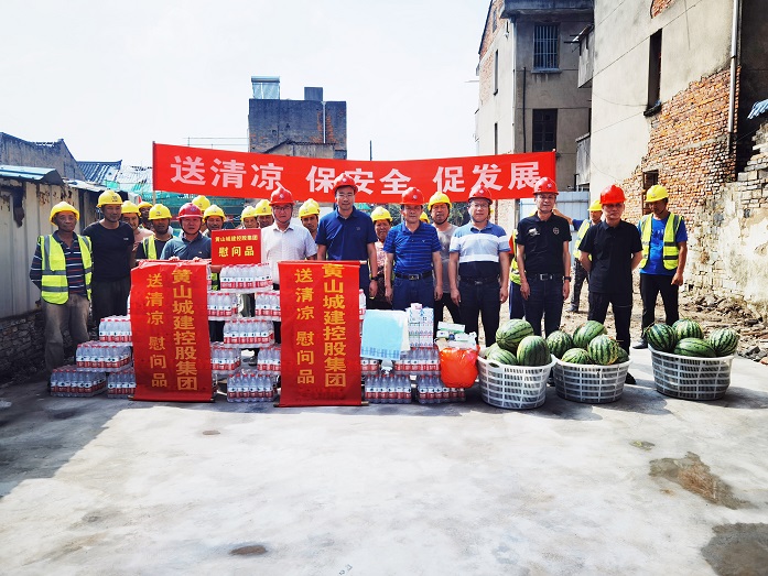 烈日炎炎,氣溫居高不下。為保障項(xiàng)目職工安全健康權(quán)益,確保項(xiàng)目安全生產(chǎn)平穩(wěn)推進(jìn),8月10日上午,黃山城投城建控股有限公司總經(jīng)理汪國文等一行赴寧國市河瀝文化街區(qū)EPC項(xiàng)目工地開展走訪調(diào)研暨“夏送清涼”慰問活動(dòng)。黃山建工集團(tuán)股份有限公司董事長(zhǎng)項(xiàng)端陽、總經(jīng)理葉金發(fā)、副總經(jīng)理吳學(xué)武陪同調(diào)研慰問。