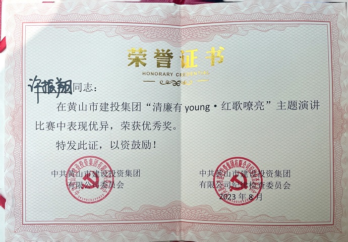 為慶祝中國共產(chǎn)黨成立102周年,深入推動學習貫徹習近平新時代中國特色社會主義思想主題教育,全面貫徹落實黨的二十大精神,8月18日,由黃山建投集團舉辦的“清廉有young·紅歌嘹亮”主題思政課隆重舉行,參賽選手以生動的語言、動聽的歌聲、真摯的感情為大家?guī)硪粓鰟e開生面的視聽盛宴,黃山建工集團青年員工許振翔在思政課演講比賽中取得優(yōu)勝獎。