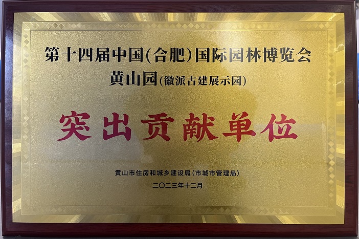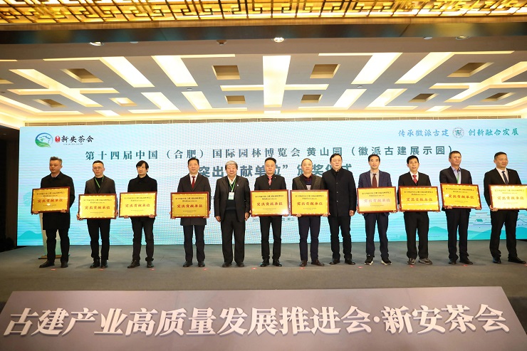 12月18日下午,中國(黃山)第三屆徽派古建產(chǎn)業(yè)發(fā)展大會古建產(chǎn)業(yè)高質(zhì)量發(fā)展推進(jìn)會·新安茶會舉行。推進(jìn)會上頒發(fā)了第十四屆中國(合肥)國際園林博覽會黃山園(徽派古建展示園)“突出貢獻(xiàn)單位”獎項,作為黃山園項目參建單位之一的黃山建工集團(tuán)再獲殊榮。