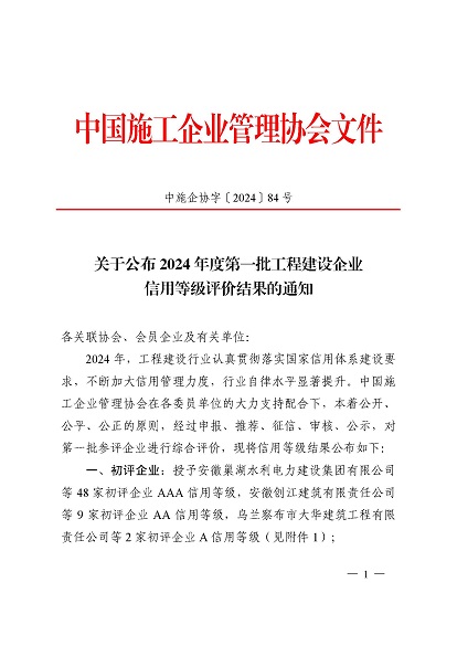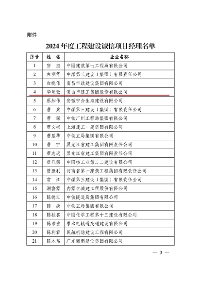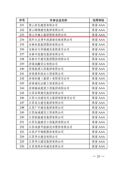 近日,中國施工企業(yè)管理協(xié)會公布了2024年度第一批工程建設企業(yè)信用等級評價結(jié)果的通知、工程建設誠信企業(yè)家評價結(jié)果、工程建設誠信項目經(jīng)理名單。黃山建工集團順利通過AAA級信用企業(yè)的年審,繼續(xù)保持AAA信用等級的殊榮。黃山建工集團總經(jīng)理葉金發(fā)獲評誠信企業(yè)家,項目經(jīng)理畢星豪獲評誠信項目經(jīng)理。此次榮譽是對黃山建工集團在工程建設領域的綜合實力和誠信經(jīng)營的高度認可。