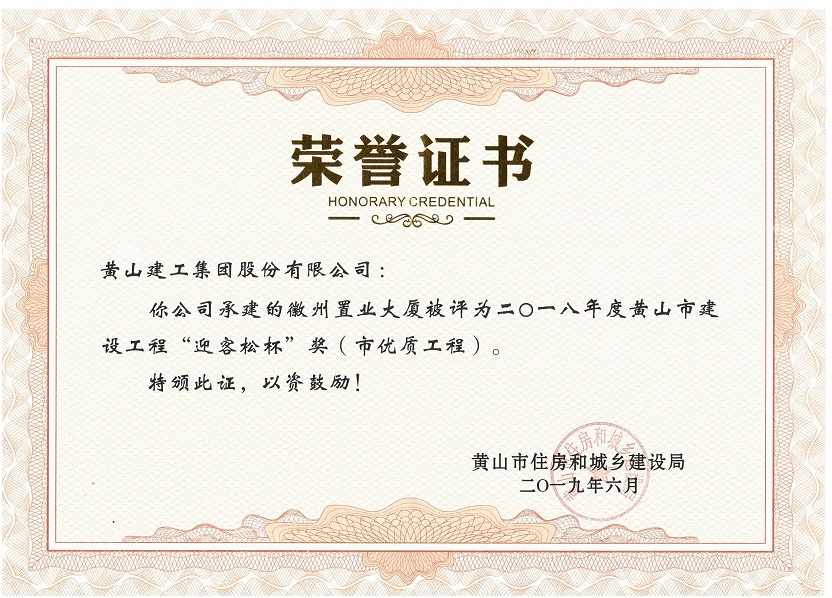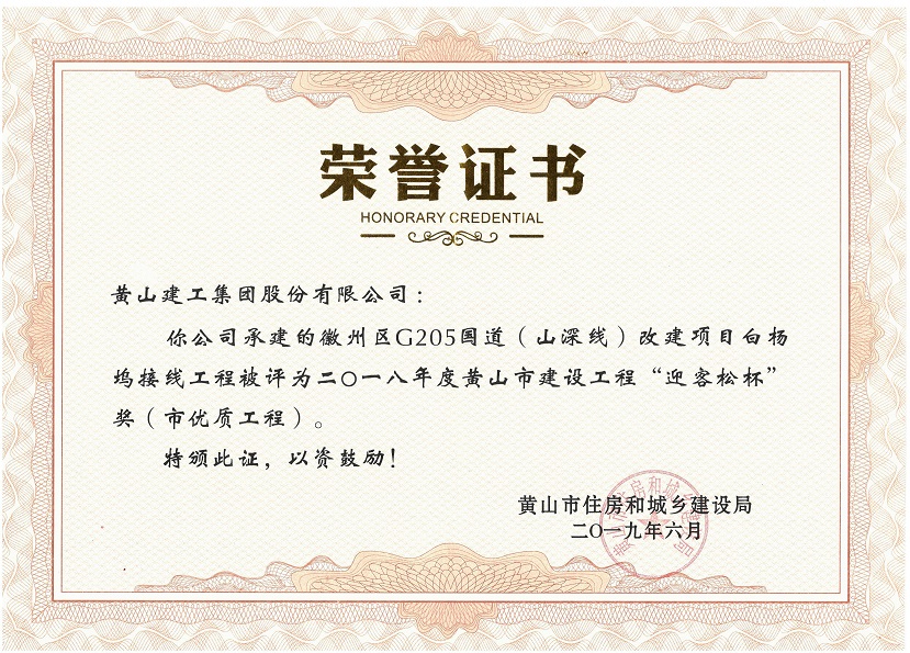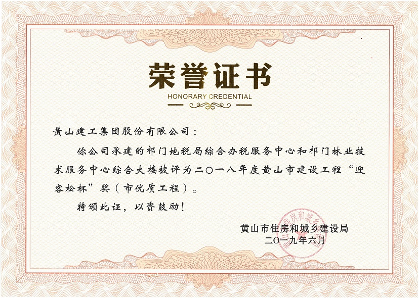 2019年度黃山市建設(shè)工程優(yōu)質(zhì)工程獎(jiǎng)